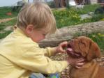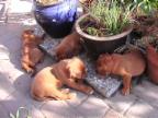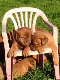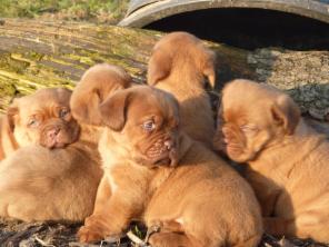 Our puppies grow up within our family and in the pack with the other dogues. They have a lot of different things in their surroundings, which form their character and make them into an 'allrounder'. We live on the outskirts of a little village right in the middle of the fields. They can move about freely and have a lot of fresh air!